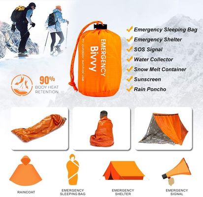 2)การใช้ในกรณีฉุกเฉิน - เหมาะสําหรับสถานการณ์ฉุกเฉินที่ต้องการความอบอุ่นหรือคุ้มกันจากสภาพอากาศทุกช่วงช่วยป้องกันอาการอ่อนความร้อนและอาการช็อค โดยเก็บรักษา/สะท้อนความร้อนของร่างกายถึง 90% ของผู้ใช้. สามารถช่วยป้องกันฝนหิมะ และความชื้น เพื่อทําให้คุณแห้งในสภาพแวดล้อมที่ชื้น หนาว เย็น และฝนตก